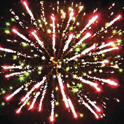 16. 2 уровня: внизу - трещащие букеты, вверху - красные, зеленые или синие звезды и облако золотого треска (трещащий дождь).