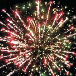 2. Поток трещащих серебряных разлетающихся искр, красные и зелёные огни.