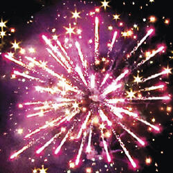 1. Разрыв красными звездами с пышными хвостами (кокос) и белое мерцание.