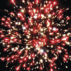 4. Множество серебряных ниспадающих нитей (парча), красные звезды и облако трещащих разрывов (трещащая хризантема).