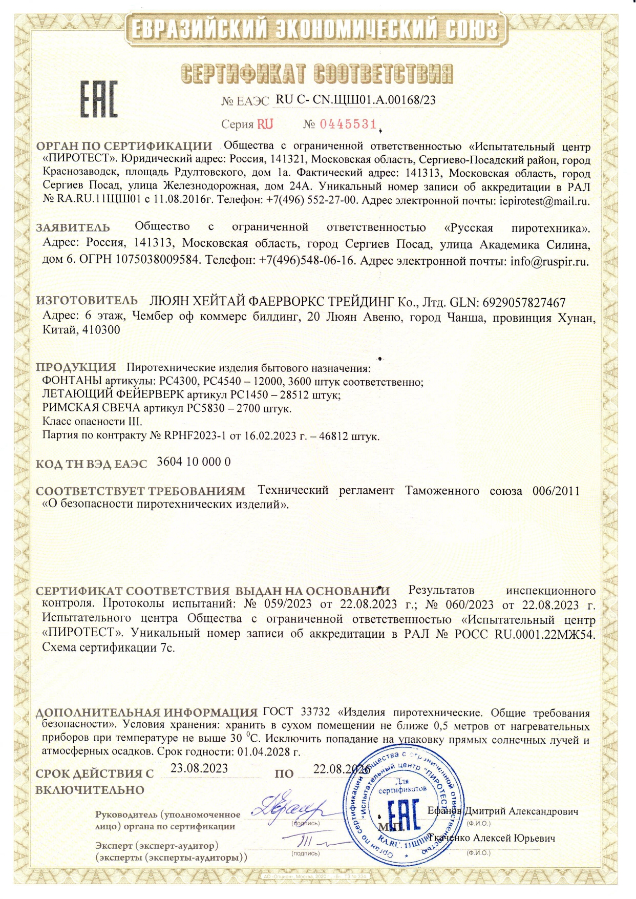 2 эффекта: 1. Поток ниспадающих серебряных огоньков и красных огней. 2. Трещащие золотые разлетающиеся искры и красные огни.
