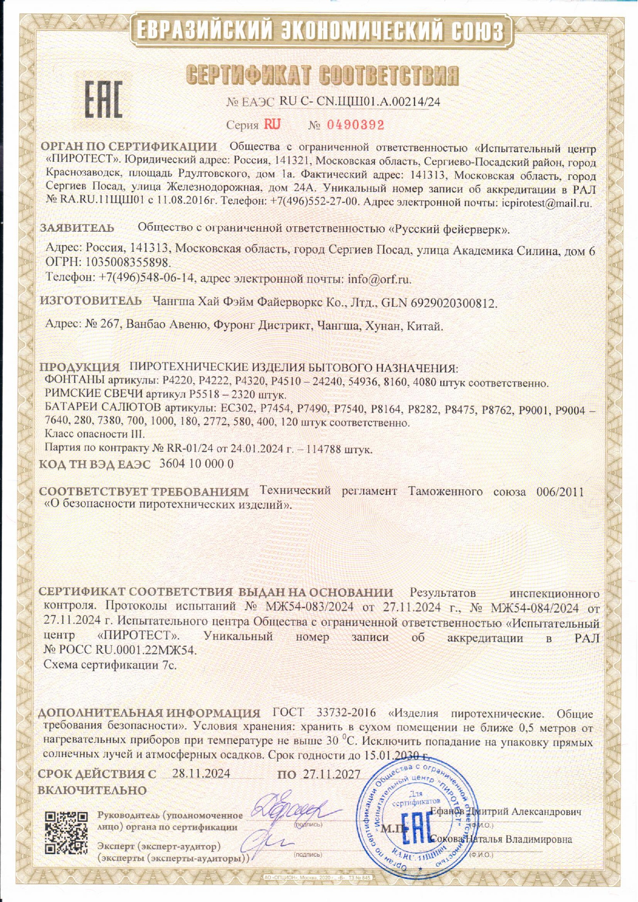 3 эффекта: 1. Серебряные искры с треском на конце. 2. Поток трещащих искр и зеленые огни. 3. Объемный треск и красно-зеленые огни.
