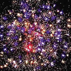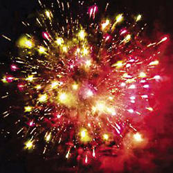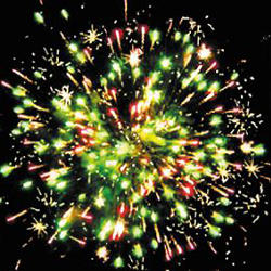 6. Сине-золотая мерцающая сфера (пион) и облако треска (трещащий дождь).