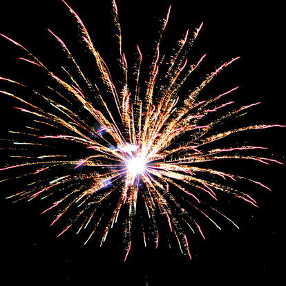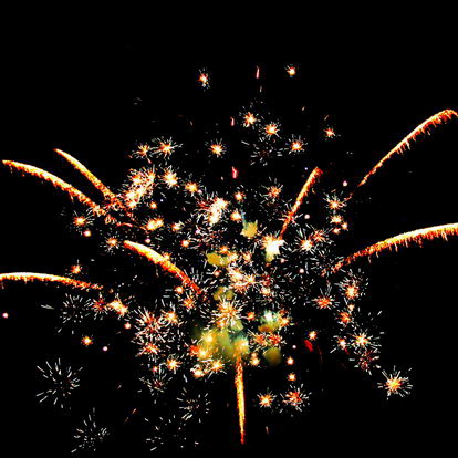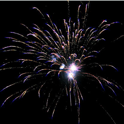 Захватывающий фейерверк для любителей авантюр. Красная, белая, синяя звезды разрываются цветными звездами с белыми и золотыми искристыми хвостами. Красочная концовка: синие звезды разрываются золотыми искристыми хвостами и облаком трещащих звезд.