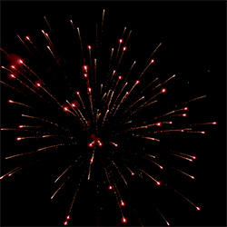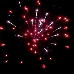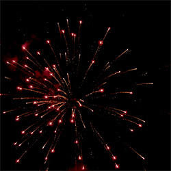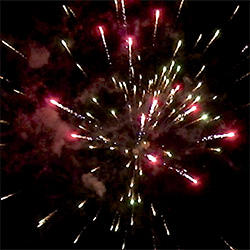5 эффектов. Разноцветные кометы разрываются сферами из: серебряных искристых форсов, красных и синих огней, красных огней с серебряными форсами и зеленых мерцающих огней, золотых искристых форсов с красными огнями на концах, красных огней и множества трещащих сфер, золотых форсов с разлетающимися трещащими серебряными искрами (залп).