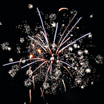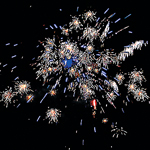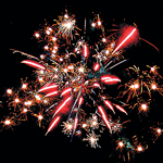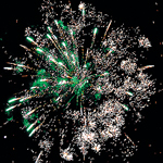 Красные и зеленые звезды разрываются разноцветными салютами, переходящих в трещащие.