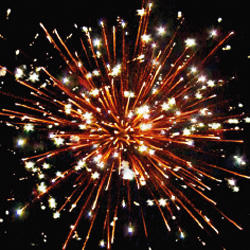 4. Сфера золотых хвостов с переходом в белые мерцающие звезды (цветная хризантема)