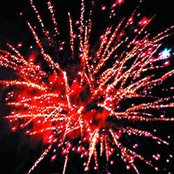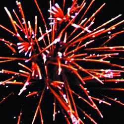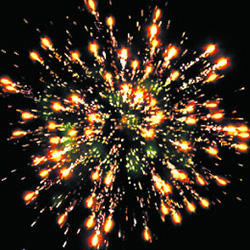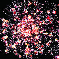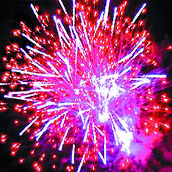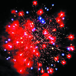 2. Красно-синяя сфера (пион) и облако трещащих разрывов (трещащая хризантема).