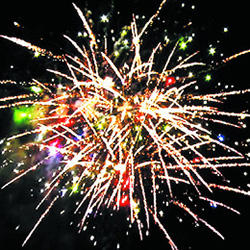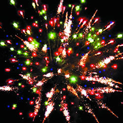 4. Серебряные звезды с пышными трещащими хвостами (трещащий кокос) и красно-сине-зеленые звезды.