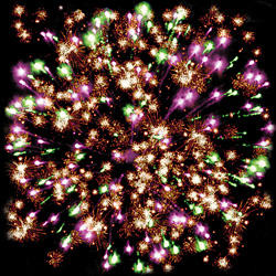 6. фиолетовых, зелёных и золотых трещащих огней.