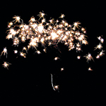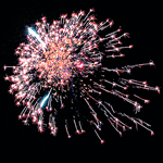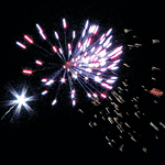 Разноцветные кометы разрываются красочным цветным салютом на фоне серебряных трещащих звезд.