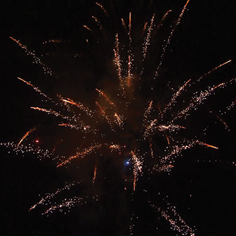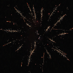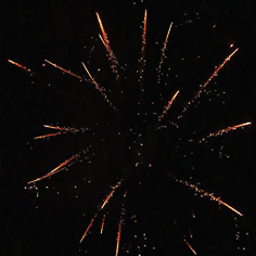 Разрыв золотыми звездами и красным мерцанием. Сфера белых мерцающих, трещащих звезд. Залпы разрываются: красными, зелеными, синими звездами. Красными с белыми хвостами и синими звездами с белым мерцанием и треском. Синими и красными звездами, золотым треском.