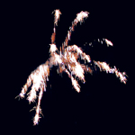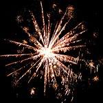 Двухуровневый салют: внизу- огромные серебряные пушистые вертушки,вверху-разрывы золотых пионов с яркими цветными шуршашими кончиками.