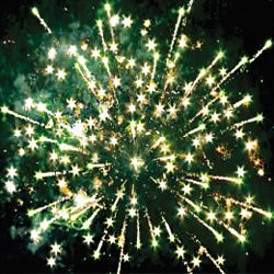 6. Красочная концовка. ЗАЛП: красно- зеленая сфера (пион) и облако треска (трещащая хризантема)