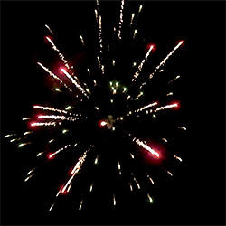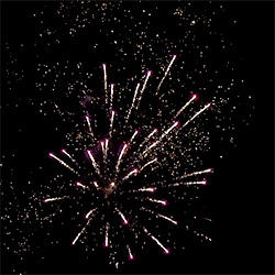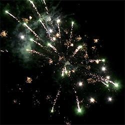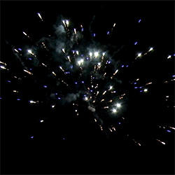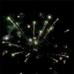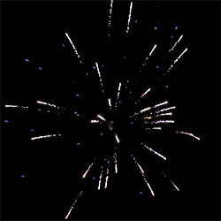 6 эффектов. Разноцветные кометы разрываются сферами из: зеленых и красных огней с серебряными искристыми форсами, синих и серебряных мерцающих огней, синих огней и серебряных искристых форсов, зеленых огней с серебряными искристыми форсами и трещащих золотых искр, фиолетовых огней с серебряными искристыми форсами и множества трещащих сфер, синих огней и золотых искристых форсов.