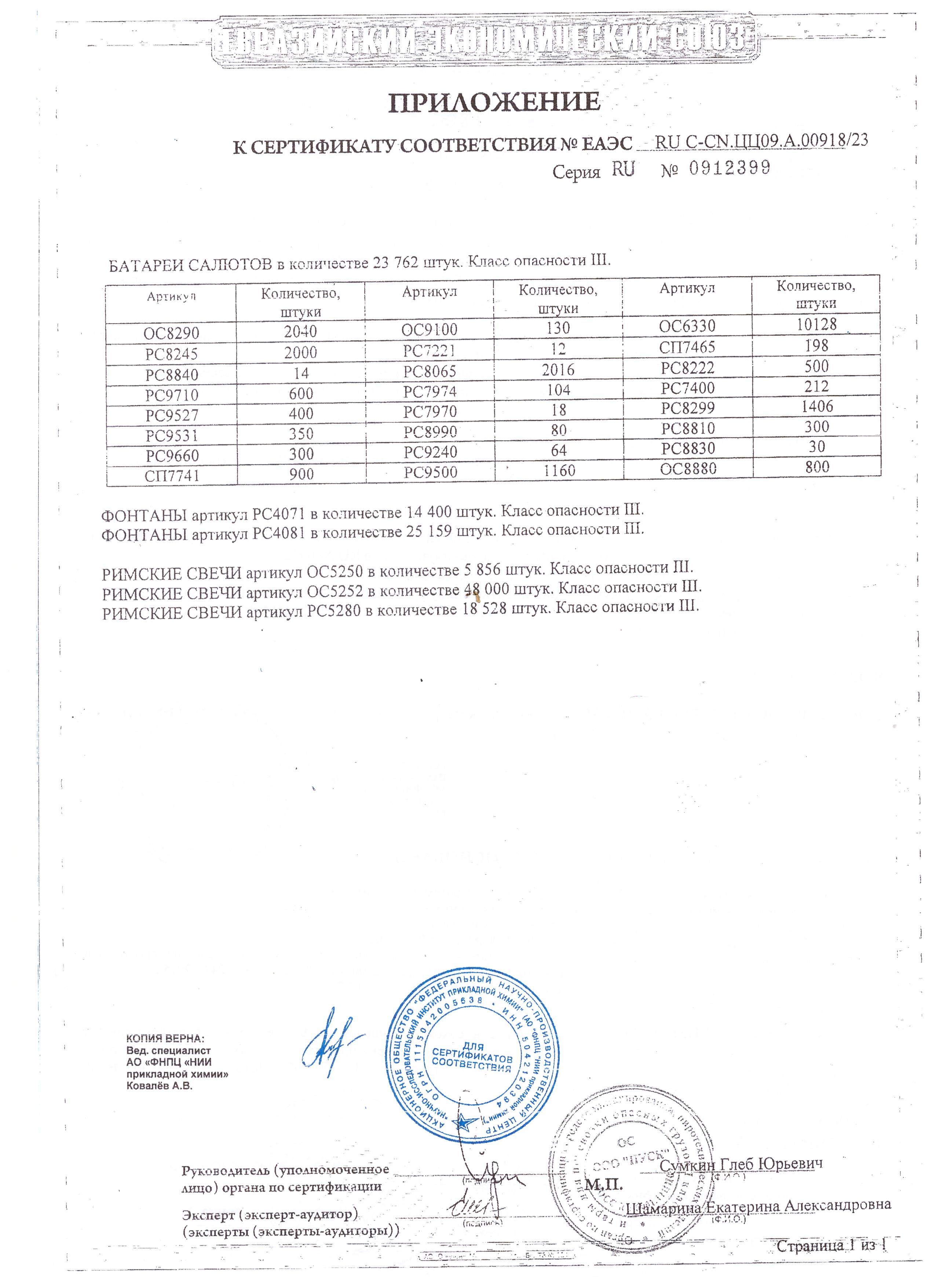 1. серебряных форсов с красными огнями на концах и трещащих огней;