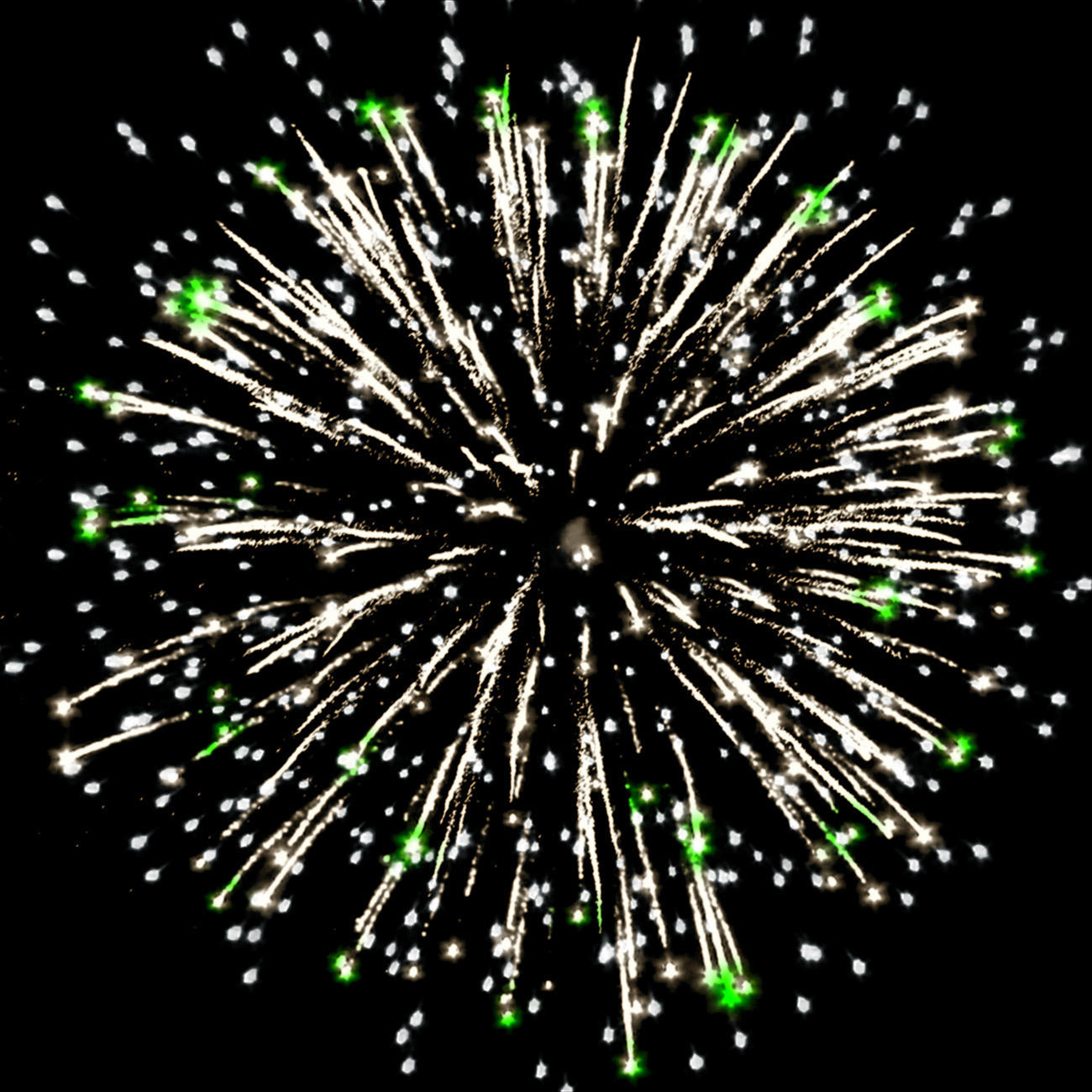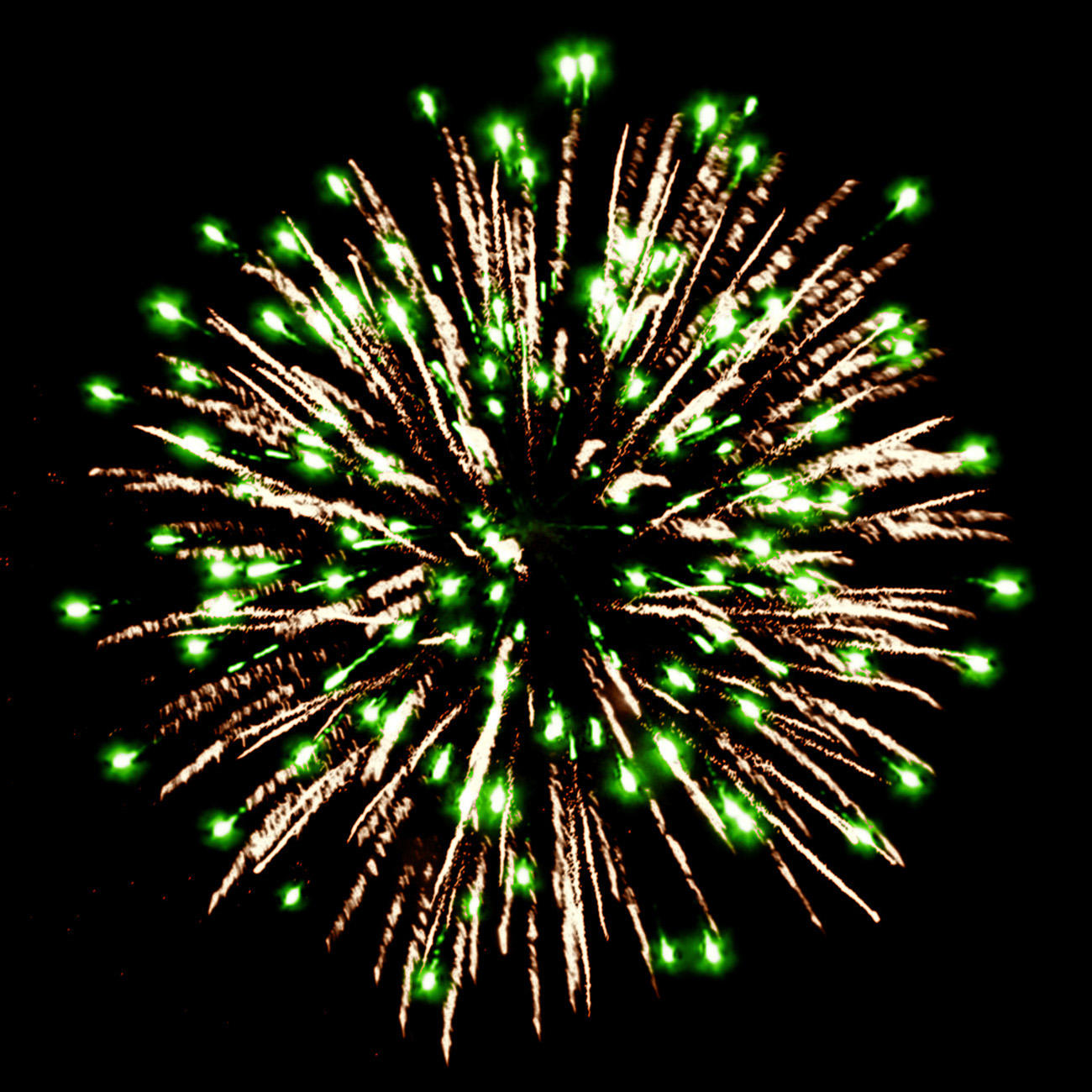 4. серебряных форсов с зелеными огнями на концах и серебряных мерцающих огней.