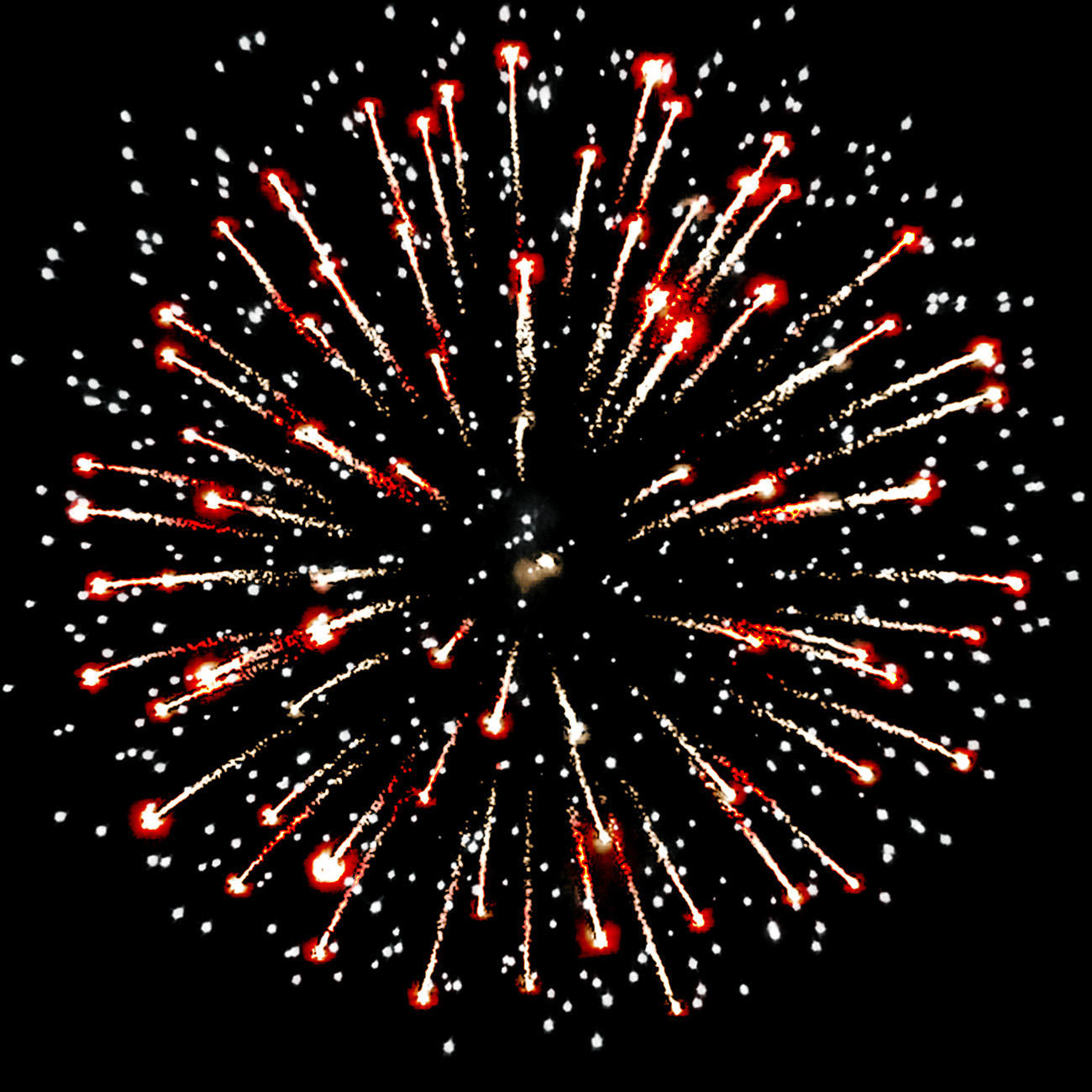 5. серебряных форсов с красными огнями на концах и серебряных мерцающих огней.