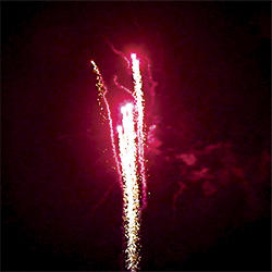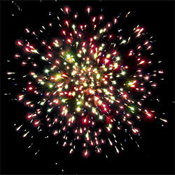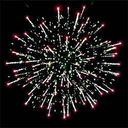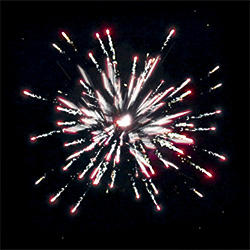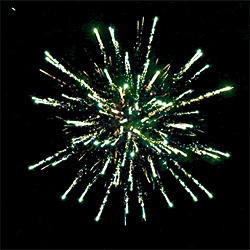 8 эффектов. Разноцветные кометы, серебряные трассы с красными огнями на концах, серебряные трассы с зелеными огнями на концах, свистящие элементы разрываются сферами из: серебряных форсов с красными огнями на концах и зеленых мерцающих огней, серебряных форсов с красными огнями на концах и трещащих огней, серебряных форсов с красными огнями на концах и белых мерцающих огней, красных, зеленых и синих огней, серебряных форсов и трещащих огней, серебряных форсов с зелеными огнями на концах и золотых мерцающих огней, серебряных форсов с зелеными огнями на концах и трещащих огней, золотых форсов.