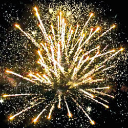 6. Красочная концовка. ЗАЛП: Желтые звезды с пышными хвостами (кокос) и облако треска (трещащий дождь)