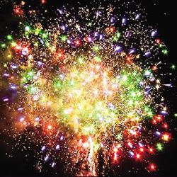 7. Зелено-сине-красная сфера (пион) и облако треска (трещащая хризантема).