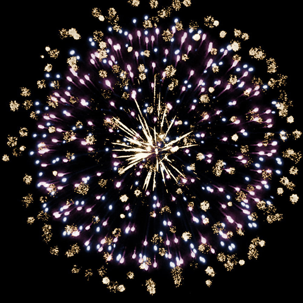 4. фиолетовых и синих огней, множеством золотых трещащих сфер;