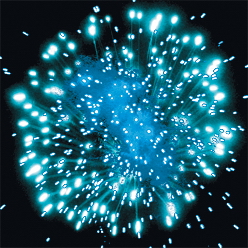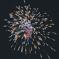 Разноцветные кометы, золотые мерцающие трещащие трассы разрываются сферами из: