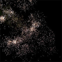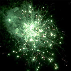 6 эффектов. Разноцветные кометы, разрываются сферами из: золотых форсов и синих огней, золотых форсов и зеленых мерцающих огней, золотых трещащих и красных огней с серебряными форсами, золотых трещащих и зеленых огней с серебряными форсами, золотых форсов (залп), зеленых огней и множества трещащих сфер (залп).