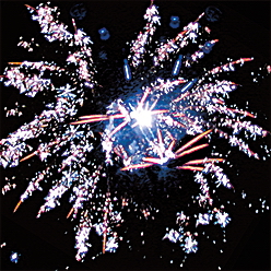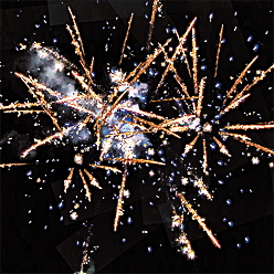 Мерцающие трещащие трассы разрываются сферами из синих огней и мерцающих трещащих форсов. Красочная концовка из нескольких залпов.
