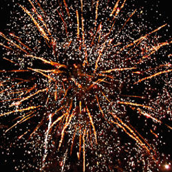 4. Комета с серебряным хвостом разрывается множеством золотных ниспадающих нитей (парча) и облаком треска (трещащий дождь)