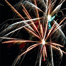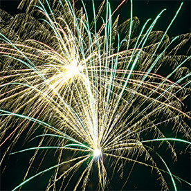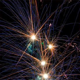Неудержимый залп для молодежи и не только. Разноцветные кометы разрываются сферами из: крупных белых и красных мерцающих огней; крупных зеленых огней и золотых форсов с трещащими искрами; синих огней и золотых форсов с трещащими искрами; оранжевых и белых мерцающих огней; золотых форсов с трещащими искрами (залп).