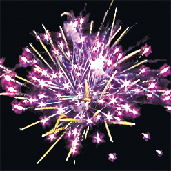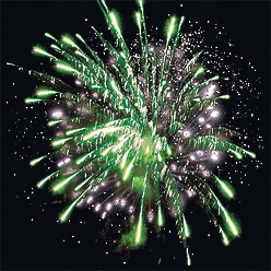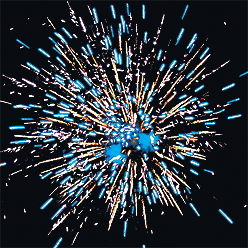 3. голубых огней и золотых искристых шуршащих форсов. Красочная концовка из нескольких залпов.