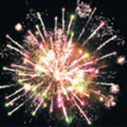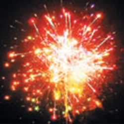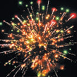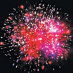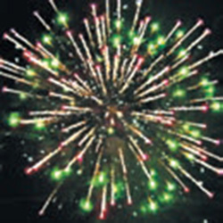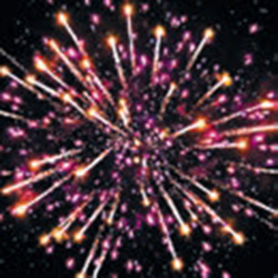 5. Фиолетово-зеленые звезды с пышными хвостами (кокос) и облако трещащих разрывов (трещащая хризантема).