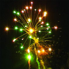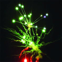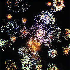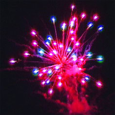 Цветные звезды разрываются разноцветными сферами, мерцающими и трещащим салютами, огнями, меняющими цвет.