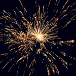 Разноцветные кометы разрываются красным и зеленым салютом, золотые змеи переходят в огромные серебряные трещащие облака с золотыми мерцающими звездами.