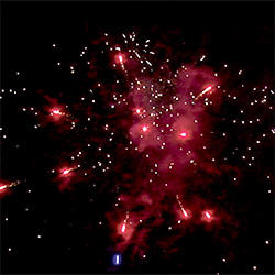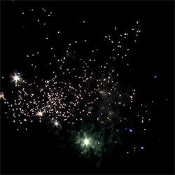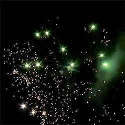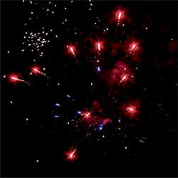 5 эффектов. Разноцветные кометы разрываются сферами из: красных огней и множества трещащих сфер, зеленых огней и множества трещащих сфер, синих огней и множества трещащих сфер, фиолетовых огней и множества трещащих сфер, серебряных форсов и трещащих золотых огней.