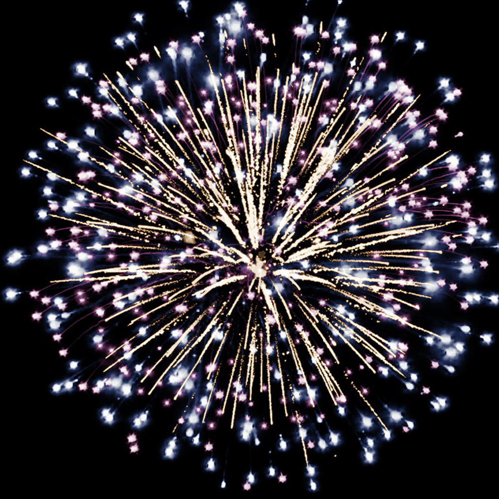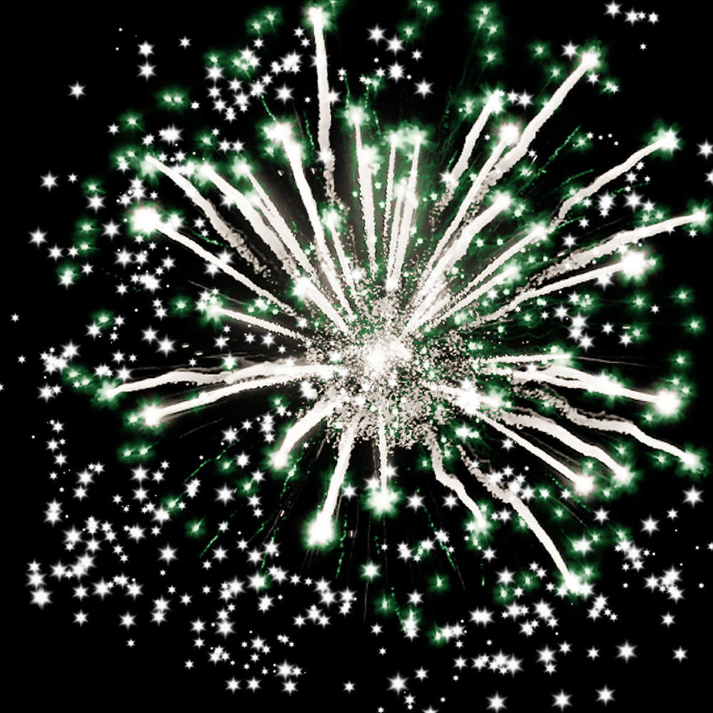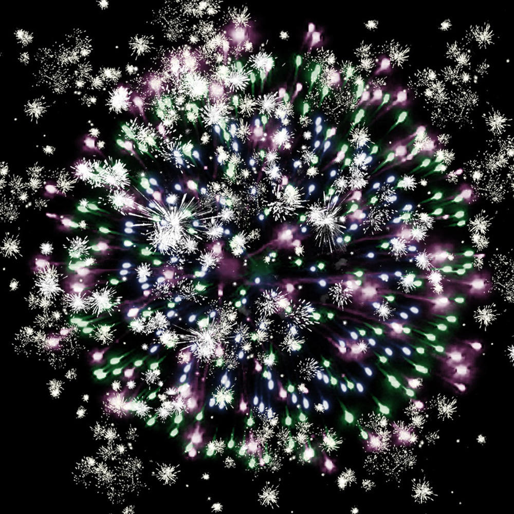3. фиолетовых, синих и зелёных огней, множества серебряных трещащих искр;