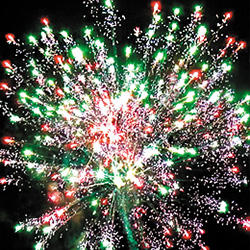 4. Зеленая сфера (пион) и облако треска (трещащая хризантема).