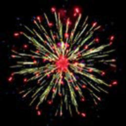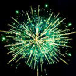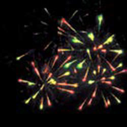 3 эффекта: Свистящие элементы. Разноцветные кометы разрываются сферами из зеленых и трещащих огней.