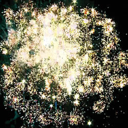 3. Желто- зеленая сфера (пион) и облако треска (трещащая хризантема)