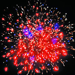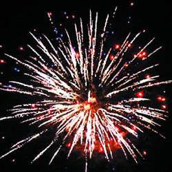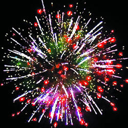 8. Сфера золотых хвостов с переходом в красные звезды (красная хризантема) и облако трещащих разрывов (трещащий дождь).