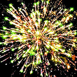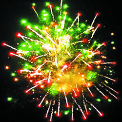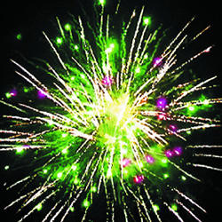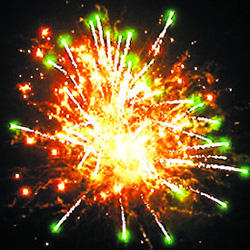7. Сфера золотых хвостов с переходом в зеленые звезды (зеленая хризантема) и облако трещащих разрывов (трещащий дождь).