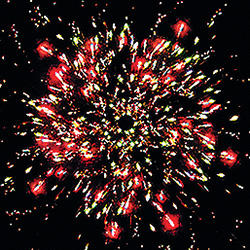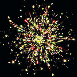5 эффектов. 2 уровня. Нижний уровень – букеты из трещащих огней. Золотые форсы разрываются сферами из: