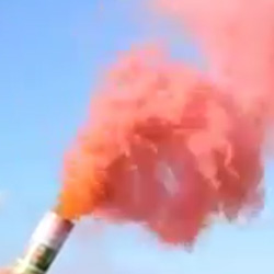 Дым красного цвета. Изделие предназначено для подачи сигнала в ночное или дневное время суток.