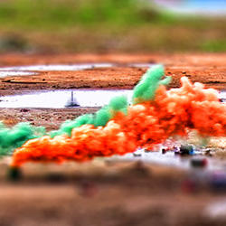 Поток цветного дыма: красный, жёлтый, оранжевый, зелёный, синий, белый.