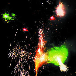 3. Поток золотых искр, красные и зеленые огни, крупные белые вспышки.