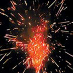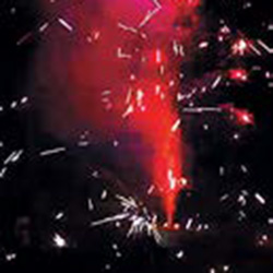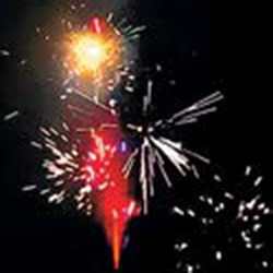 Красное пламя и поток серебряных искр; поток синих, красных и трещащих разлетающихся огней; поток красных огней и серебряных трещащих разлетающихся искр; синее пламя и поток золотых звездочек; красные, зеленые огни и разлетающиеся трещащие серебряные искры; синее пламя и поток серебряных огней; поток красных огней и серебряных трещащих разлетающихся искр.