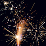 Поток белых, золотых, разноцветных, мерцающих, искр с треском.