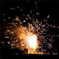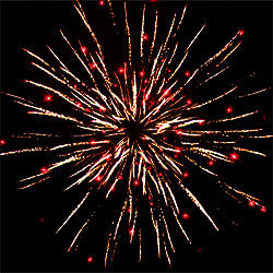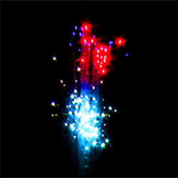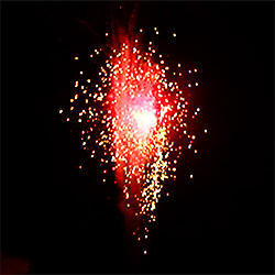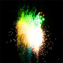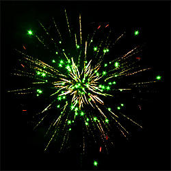 салют-фонтан, 2 уровня. Нижний уровень – фонтан. 2 эффекта: поток разлетающихся трещащих серебряных огней, поток золотых искр. Верхний уровень. 6 эффектов. Букеты из красных, синих и белых мерцающих огней, красных и разлетающихся трещащих огней, зелёных и разлетающихся трещащих огней; Сферы из золотых форсов и красных огней, золотых форсов и зелёных огней, золотых форсов и синих огней.
