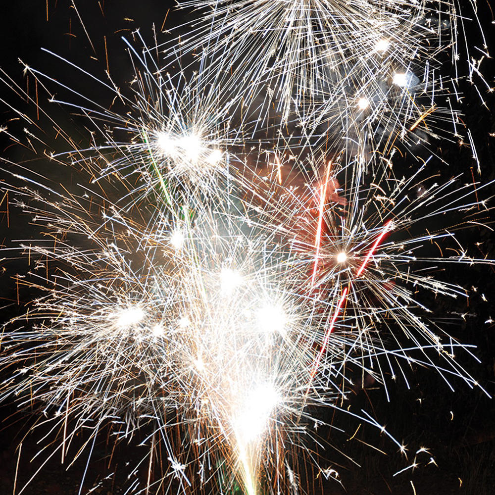 2. Поток серебряных трещащих разлетающихся искр, красных и зелёных огней.